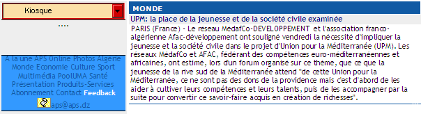 APS, 6 Juin 2008 Forum AFAC-MédafCo-DÉVELOPPEMENT"Union Pour la Méditérranée"